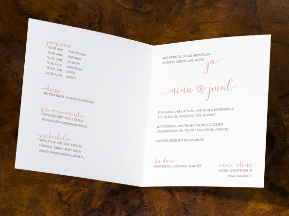 Die Hochzeitseinladungen werden mit
