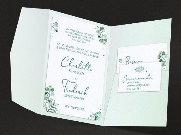 Hochzeitseinladungen mint-grün | Einladungen drucken