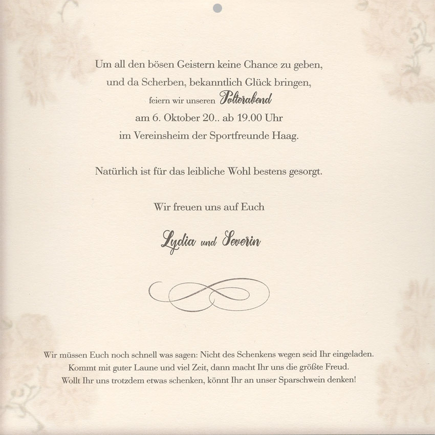Cremefarbener, bedruckter zweiter Texteinleger der Einladungskarten zur Hochzeit.
